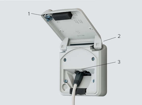 2. Schutzart IP54 bei geschlossenem Deckel in gestecktem und ungestecktem Zustand.