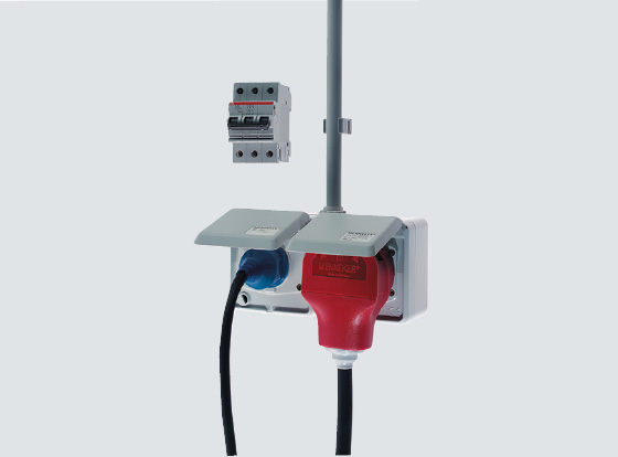 Eine häufig gewählte Steckdosenkombination: 16 A CEE und SCHUKO®. Bei Anschluss dieser Kombination über eine Zuleitung ist ein 3-poliger Leitungsschutzschalter obligatorisch.