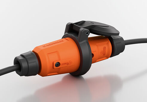 Die robusten Gehäuse sind außerdem bis zu einem Gewicht von einer Tonne belastbar. Der selbstschließende Deckel der Kupplungen garantiert IP54 Schutz, in Betrieb halten die Steckvorrichtungen Temperaturen zwischen -30 °C und +40 °C aus. Die verschraubte Dichtung an der Kabelverschraubung und der große Anschlussraum machen die Montage zudem besonders einfach und komfortabel.