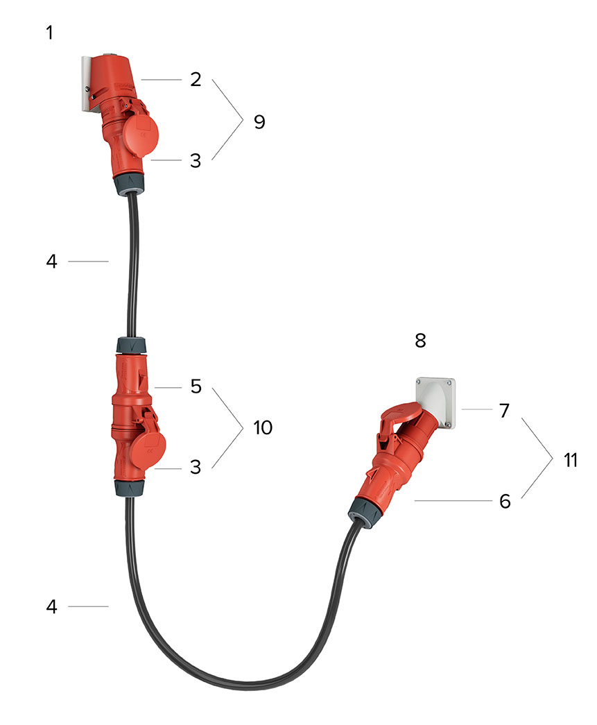 Unsere Steckvorrichtungen werden entsprechend der DIN EN IEC 60309-1 (VDE 0623-1) (dem internationalen Standard für Stecker und Steckdosen, Leitungskupplungen und Gerätesteckvorrichtungen) benannt: